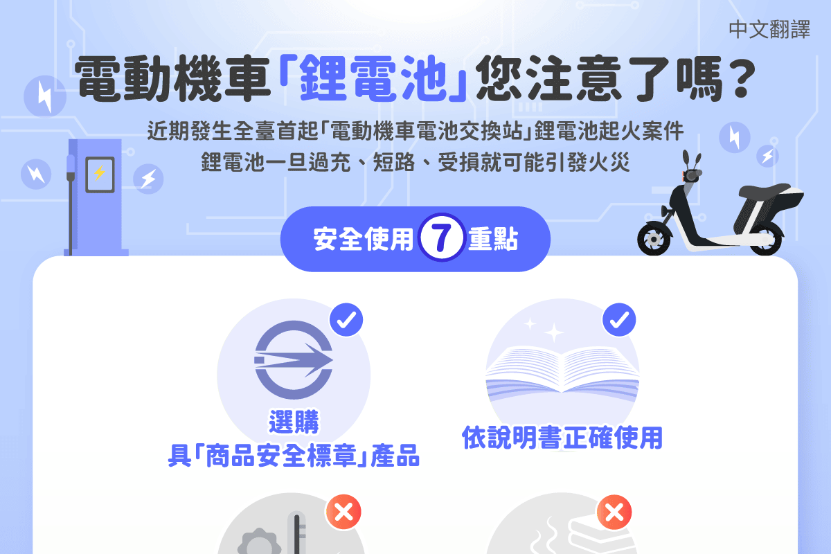 移工宣導|電動機車「鋰電池」您注意了嗎?-多國語