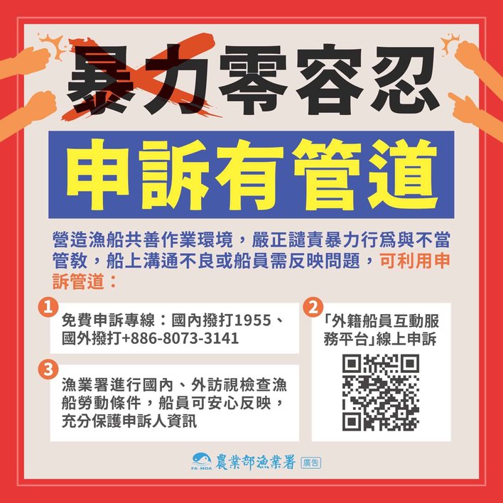 移工宣導|暴力零容忍,申訴有管道-印、英版 2024-03-19 作者: 21世紀人力仲介 媒體布小編 21世紀全球外勞集團協助您找到最適合的優質外籍勞工/家庭看護工/家庭幫傭 / 製造業移工/營造業移工/農業移工,如有服務需求請來電免付費專線(手機市話皆可撥) 0800-32-1111 或 留言給我們 上一頁上一篇移工宣導|居家防火 同守護長輩安全-多國語 下一篇外籍移工|未依規申報危險物品 罰則將大幅提高 不再限期改善 2 次情節重大可廢止登記下一篇 外籍移工|災後重建 13 個部會提專案報告 無薪假移工支援農業 勞動部允研究 2025-10-17 閱讀更多 » 外籍移工|截至第二季 雇主違反就服法有 2 千餘件 聘僱未經許可外國人 遭罰鍰近 800 件 2025-10-17 閱讀更多 » 移工宣導|確診阿米巴性痢疾不用怕,就醫領藥流程一次看懂!-多國語 2025-10-23 閱讀更多 » 相關
