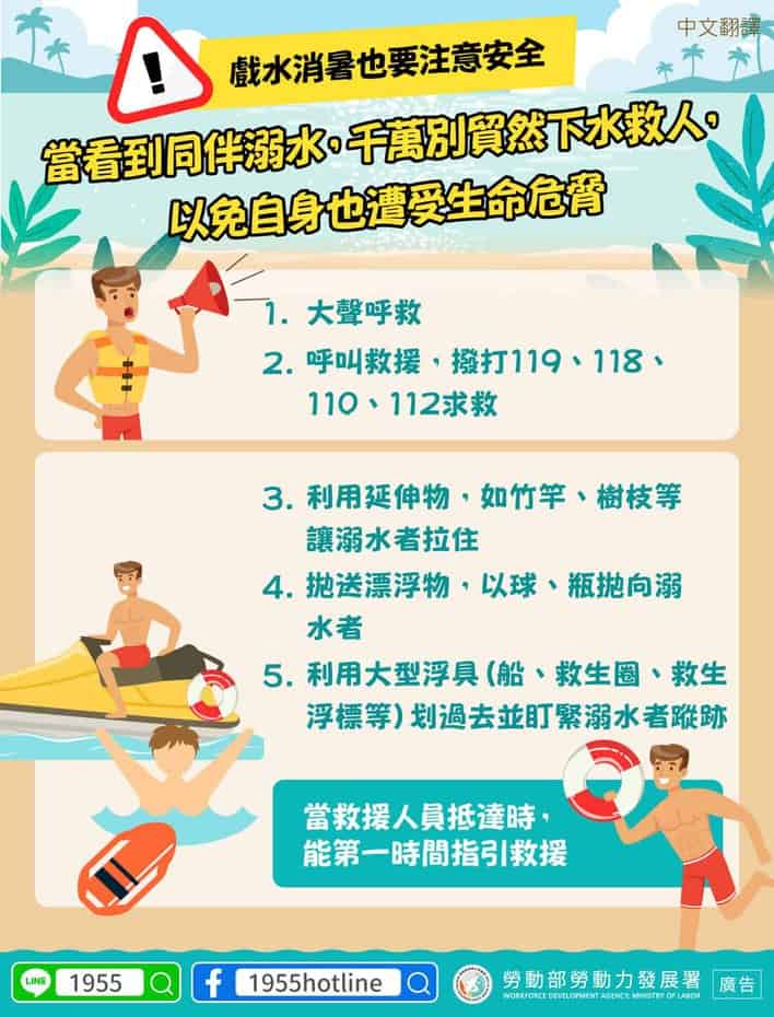 移工宣導|戲水消暑也要注意安全-多國語 2023-08-11 作者: 21世紀人力仲介 媒體布小編 申請外勞專家(02)2765-1111您找到最適合的優質外籍勞工/監護工/家庭幫傭 21世紀全球外勞集團協助您找到最適合的優質外籍勞工/家庭看護工/家庭幫傭 / 製造業移工/營造業移工/農業移工,如有服務需求請來電免付費專線(手機市話皆可撥) 0800-32-1111 或 留言給我們 上一頁上一篇移工活動|鼓勵勞雇同歡 南市一家親活動擴大舉辦 下一篇營造業移工|營造業移工申請需求逾萬人 9 月底公告核配數下一篇 外籍移工|勞退舊制準備金計算 明年4 月納入年資滿10 年移工 2025-10-20 閱讀更多 » 移工仲介|重建處仲介法令研習 即日開放報名 2025-10-20 閱讀更多 » 移工宣導|確診阿米巴性痢疾不用怕,就醫領藥流程一次看懂!-多國語 2025-10-23 閱讀更多 » 相關