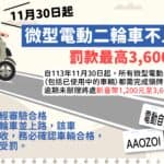 移工宣導|113年11月30日起,微型電動二輪車不上牌,罰款最高3,600元!-多國語