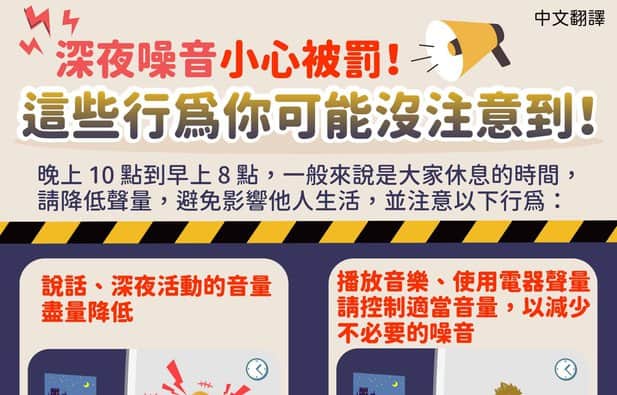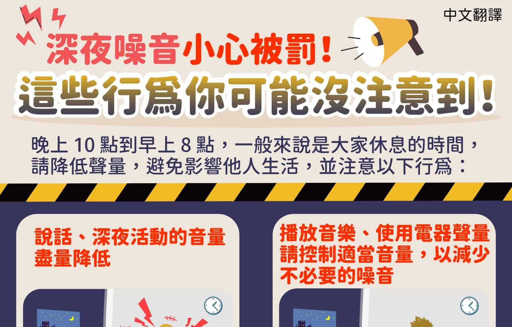 移工宣導|深夜噪音小心被罰!這些行為你可能沒注意到-多國語