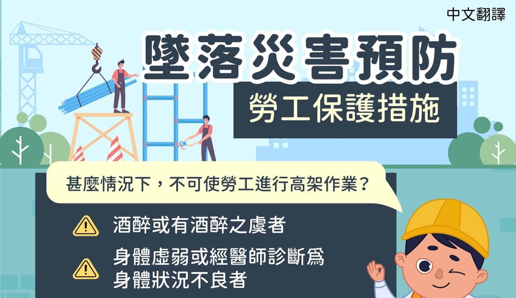 移工宣導|墜落災害預防 勞工保護措施-多國語