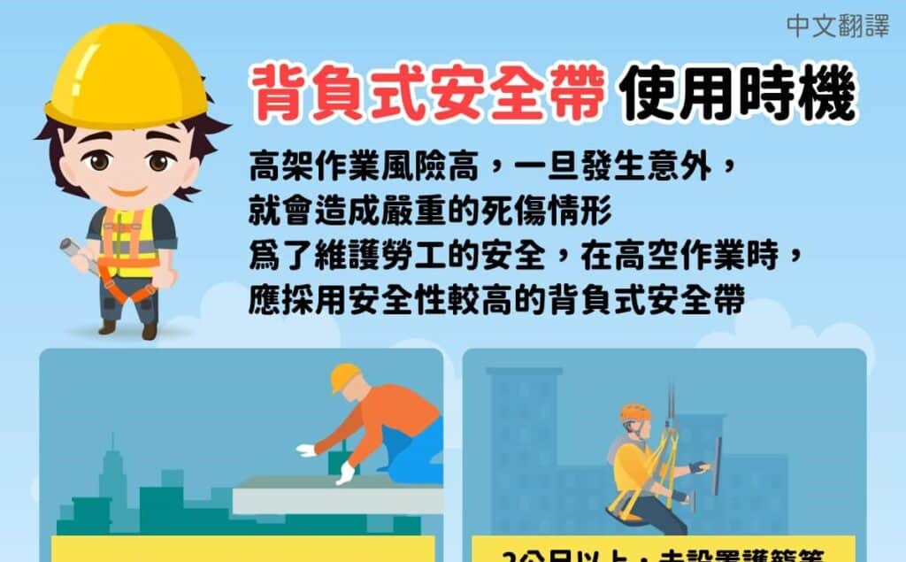 移工宣導|背負式安全帶使用時機-多國語