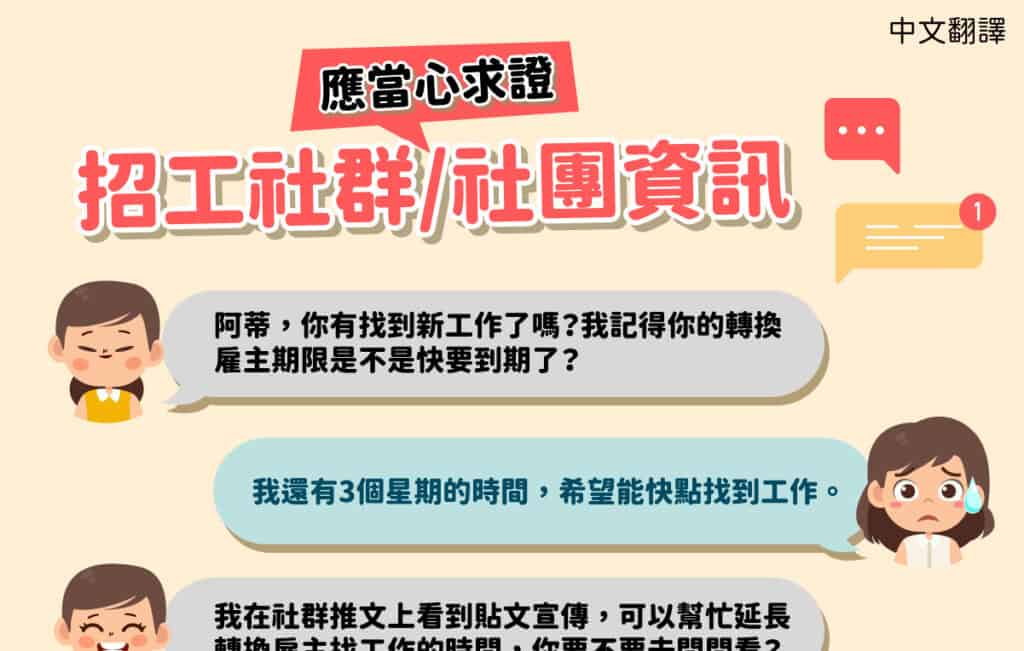 招工社群/社團資訊應當心求證-多國語