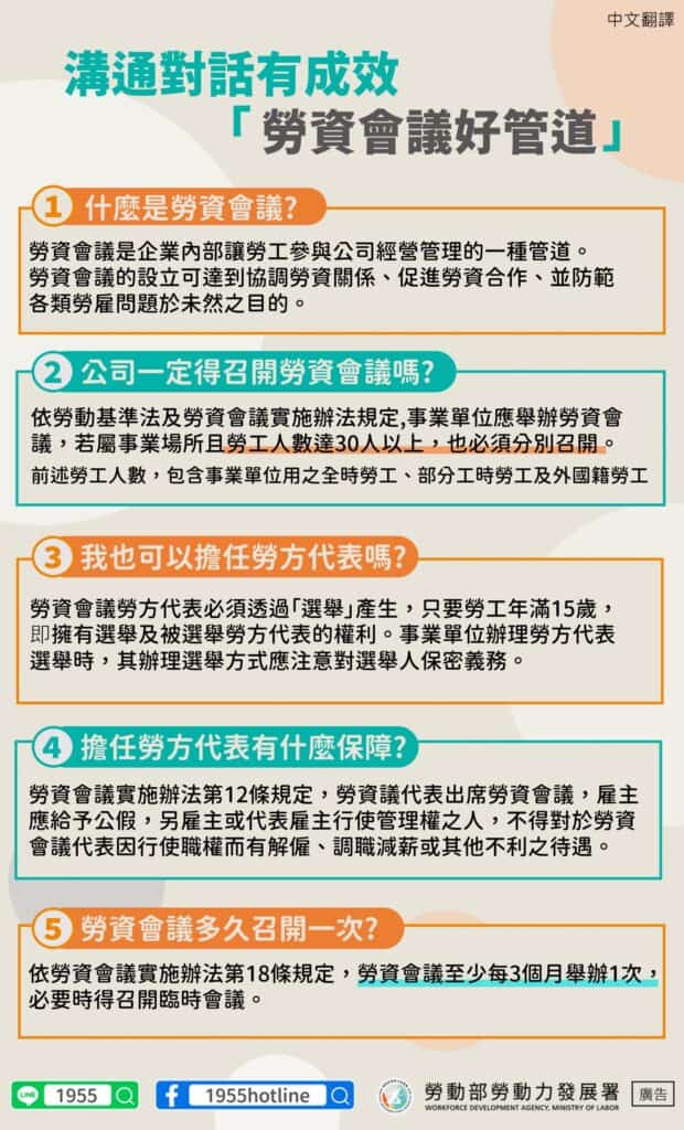 移工宣導|溝通對話有成效 勞資會議好管道-多國語