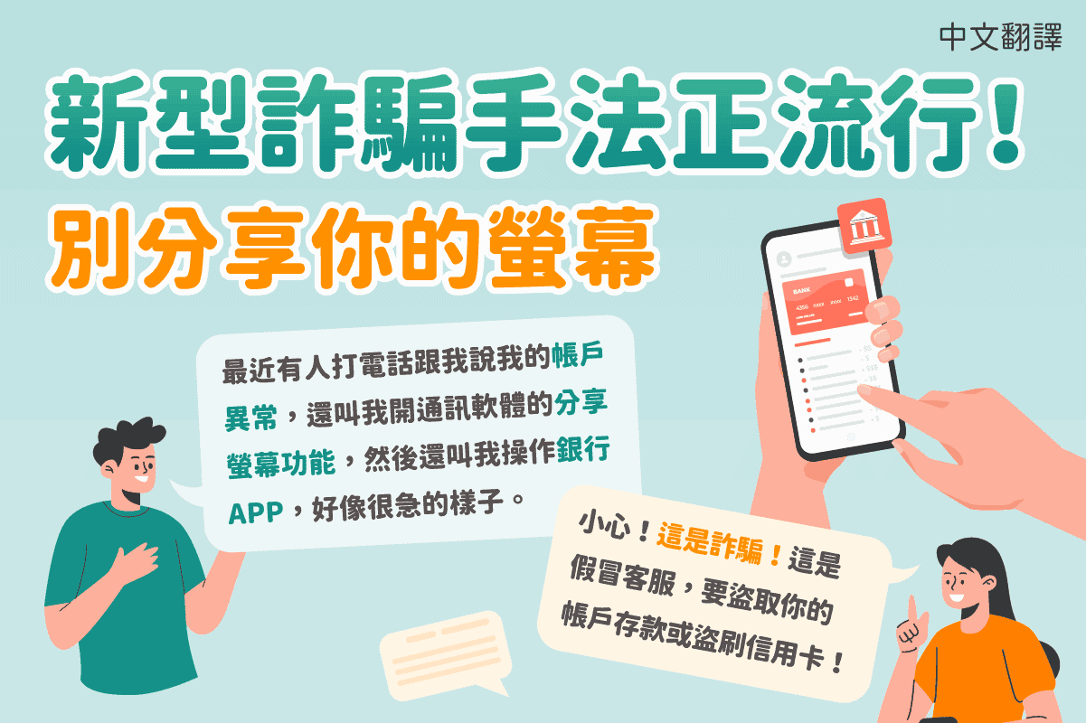 新型詐騙手法正流行!別分享你的螢幕(詐騙)-多國語