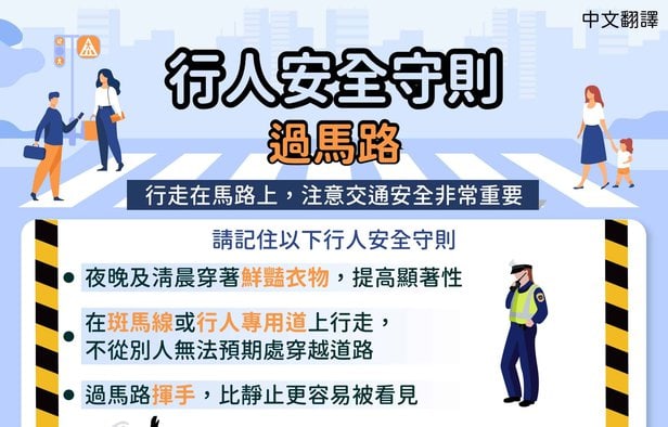 行人安全守則 過馬路-多國語
