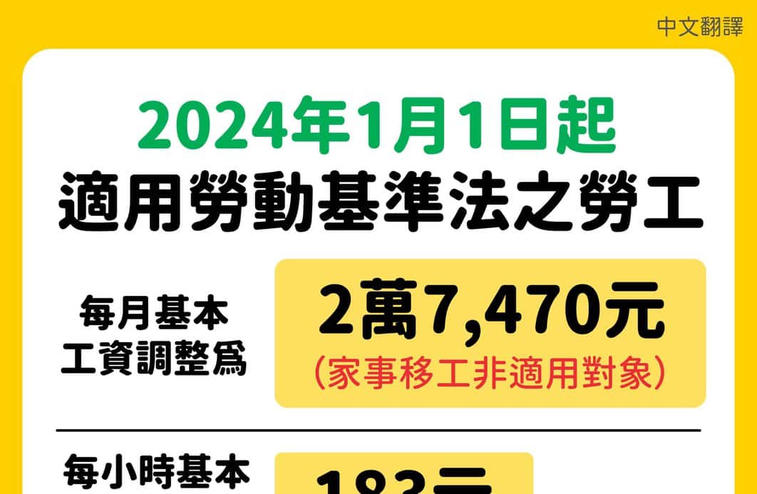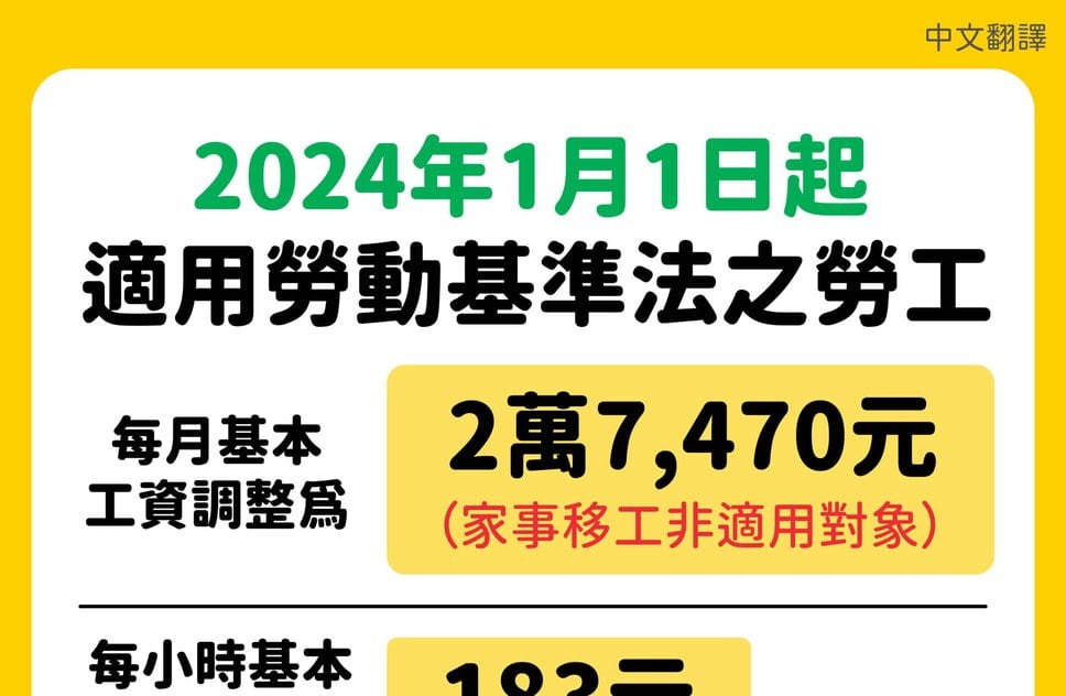 移工宣導|2024年1月1日起適用勞動基準法之勞工-多國語