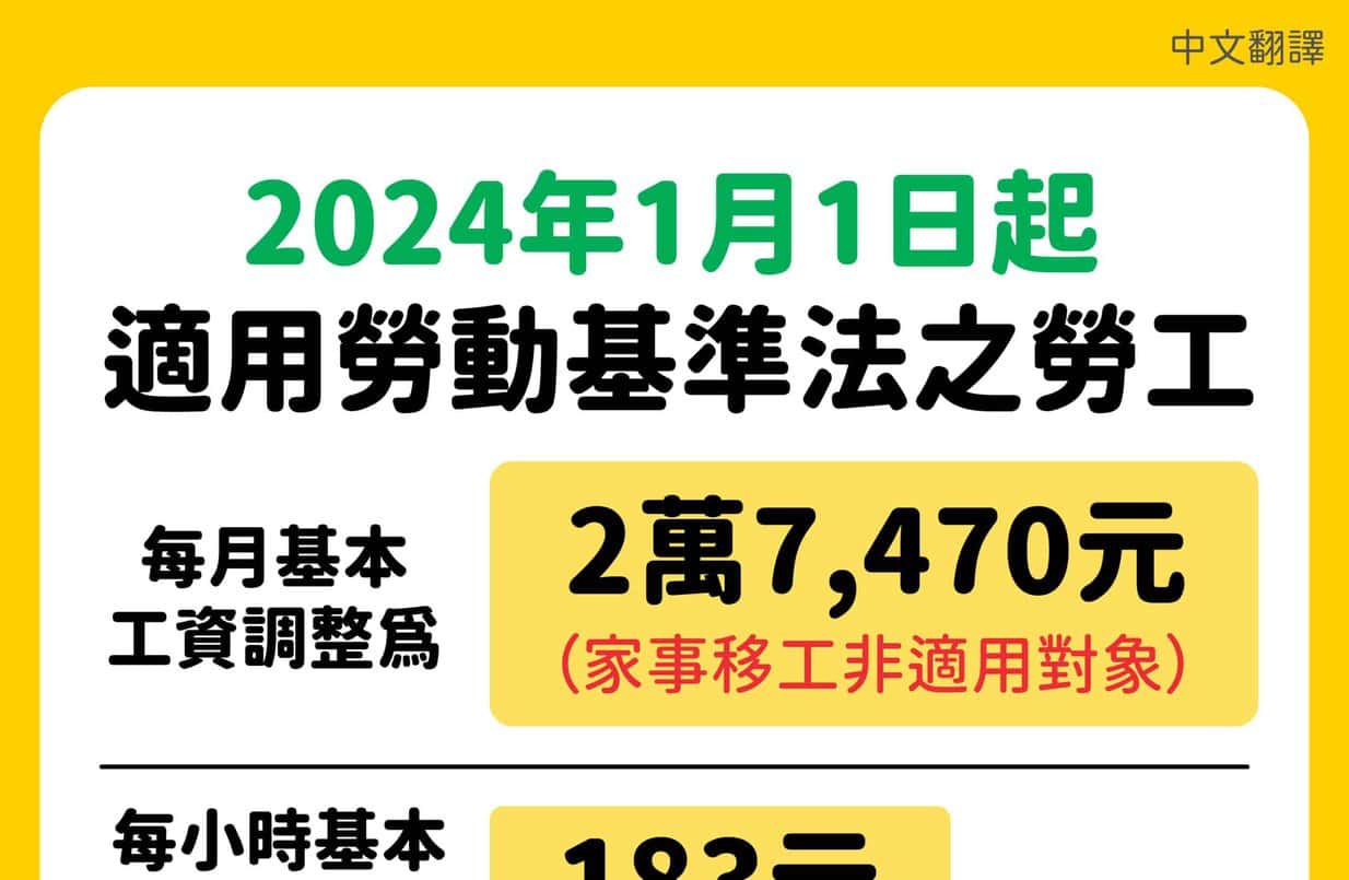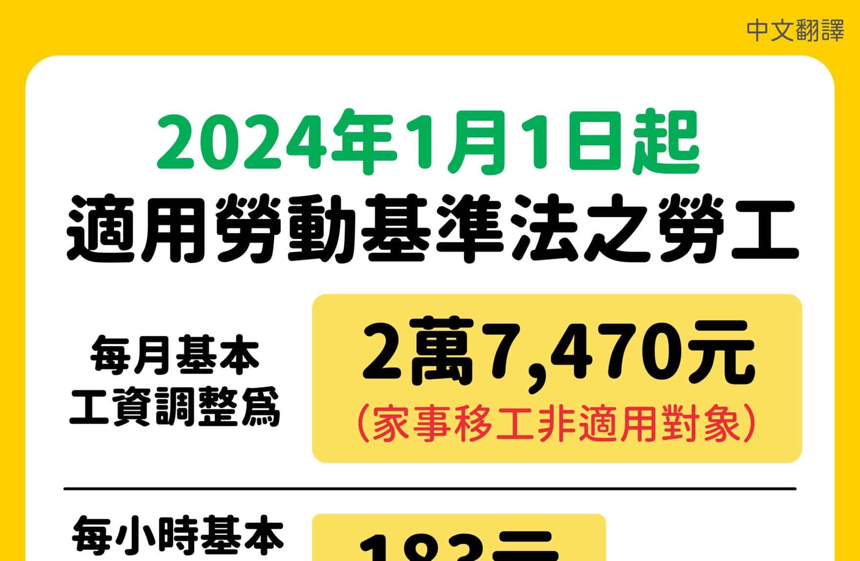 2024年1月1日起適用勞動基準法之勞工-多國語